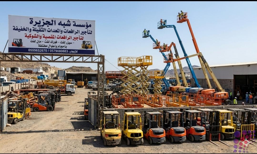 شبه الجزيرة للتأجير: رافعات مقصية + فوركلفت – رفع كامل لمشاريعك!